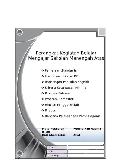 Perangakat ajar sma rpp penjas format satu lembar kelas xii sma / ma.